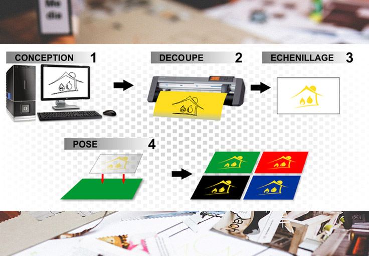 A vos côtés, notre service graphique est en mesure de réaliser toutes vos demandes de créations visuelles pour vos enseignes, cartes de visite, marcage vehicule, site web ...